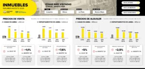 En agosto de 2025, los precios de venta de departamentos en dólares por metro cuadrado mostraron comportamientos mixtos respecto a julio: CABA registró una baja del 0,3%, GBA Norte una suba del 0,3%, GBA Oeste una baja del 0,2% y GBA Sur una suba del 0,7%. En el...